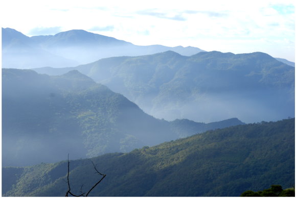 看著山嵐漸漸升起,忽然有著"行到水窮處,坐看雲起時"的感受,這是王維<<終南別業>>裡的一句